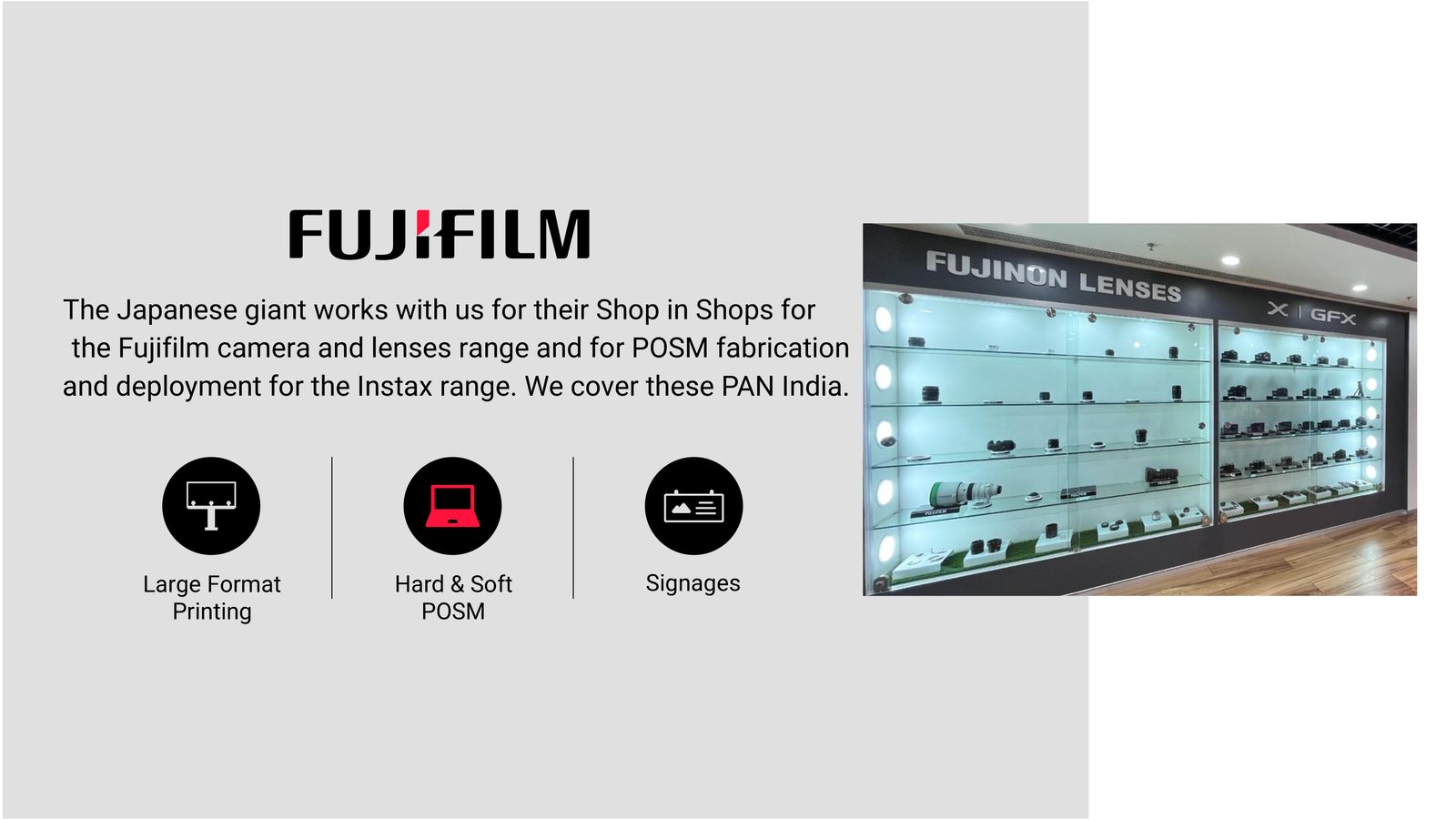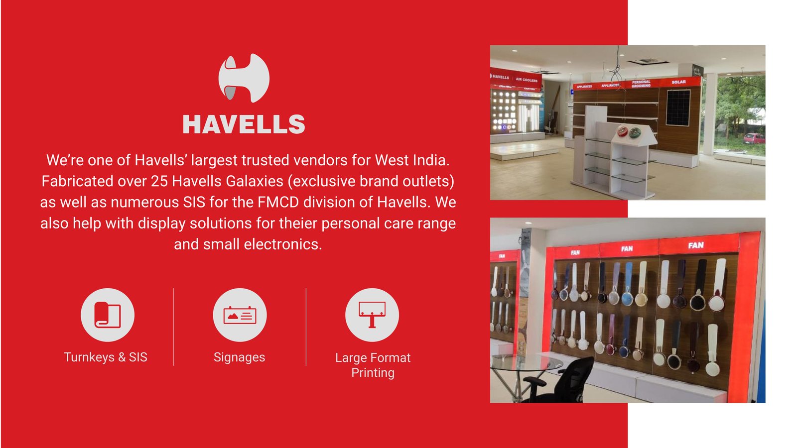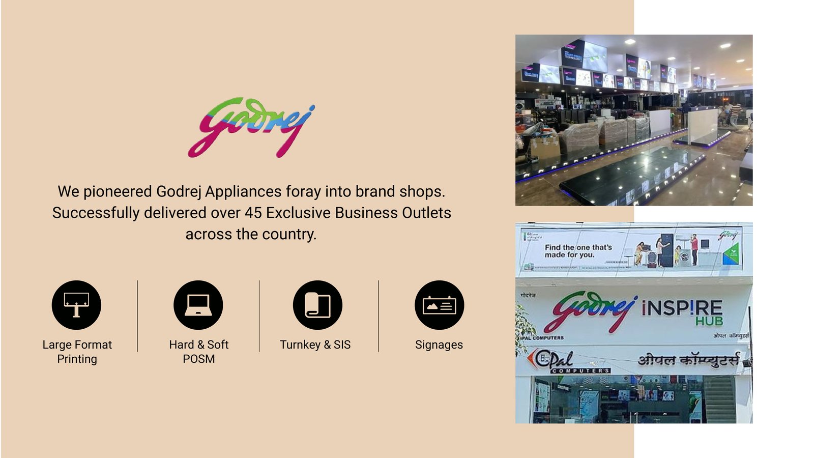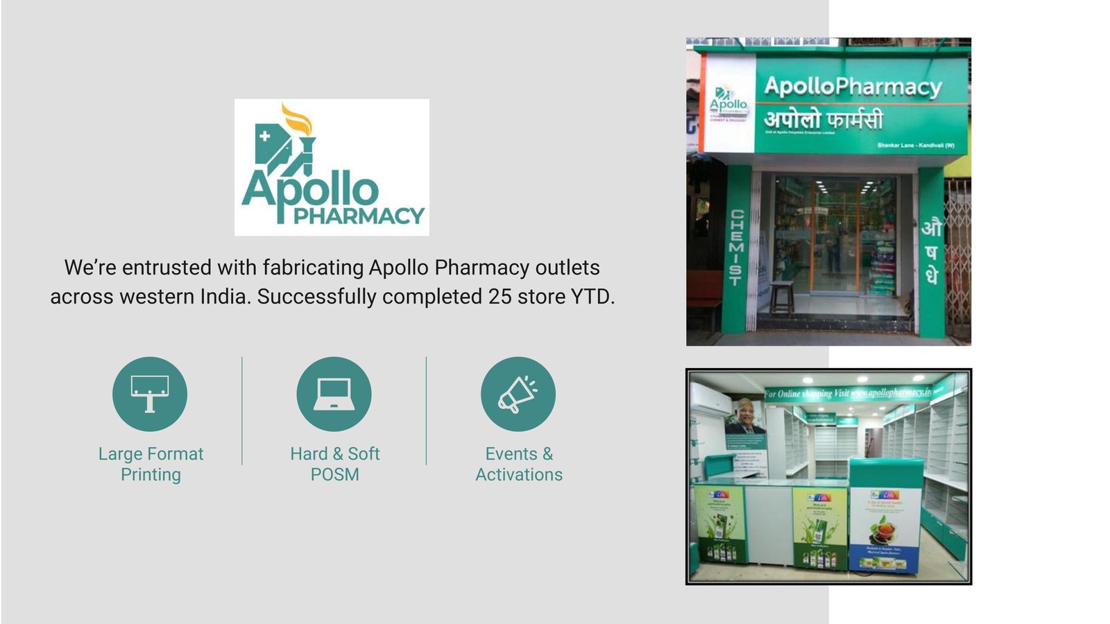 Schedule a callWe turn retail visibility into business results partnering end-to-end from brief to build. Our teams handle client servicing, project management, design, and in-house production, so execution stays fast, consistent, and on-brand. With a pan-India network, we deliver reliable rollouts at scale.