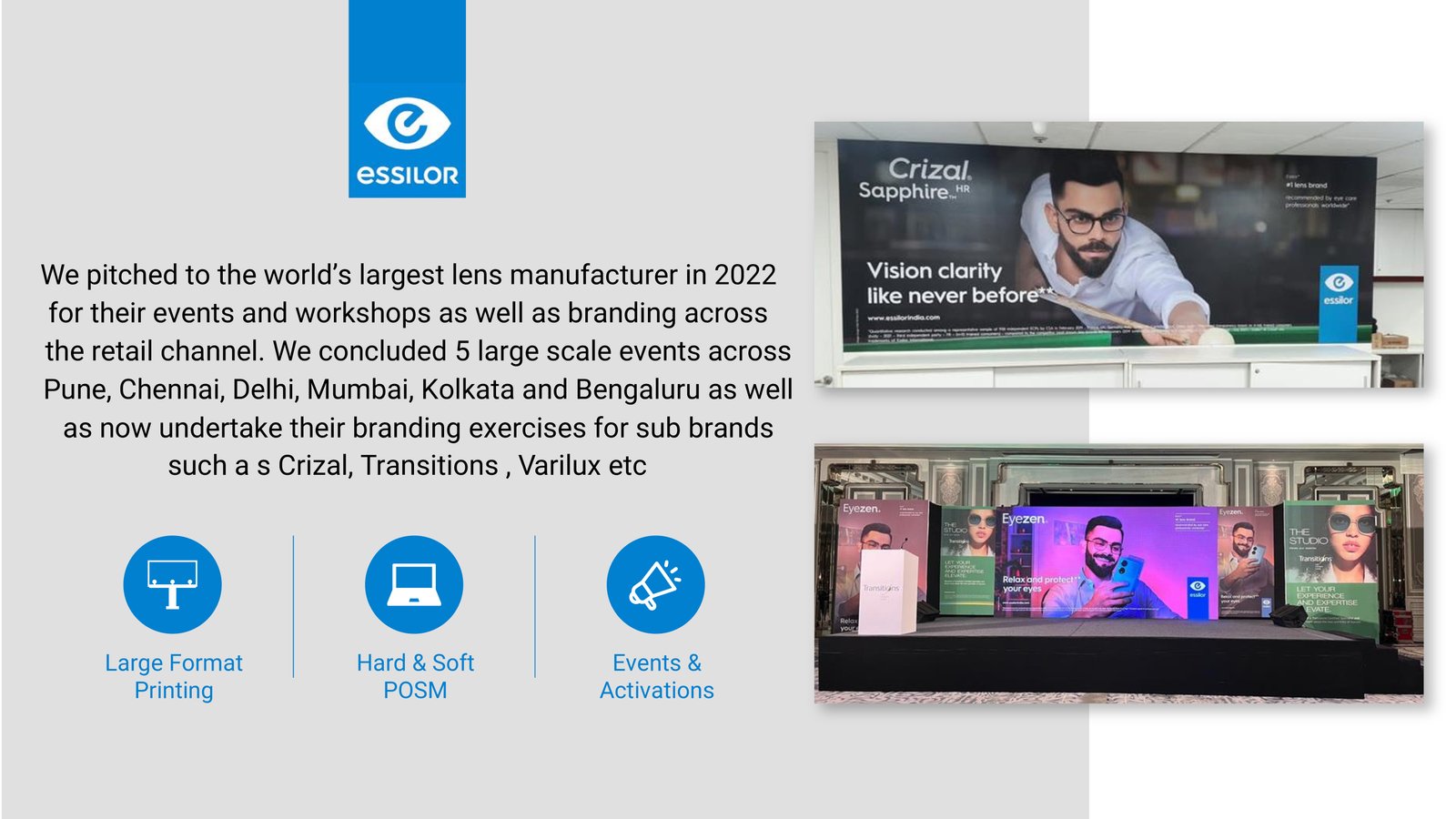 Today, we’re a 65+ team across client servicing, project management, design, and in-house production, with offices in Delhi, Mumbai, and Bengaluru, and satellite teams in Kolkata, Pune, and Chennai delivering end-to-end execution and nationwide coverage.